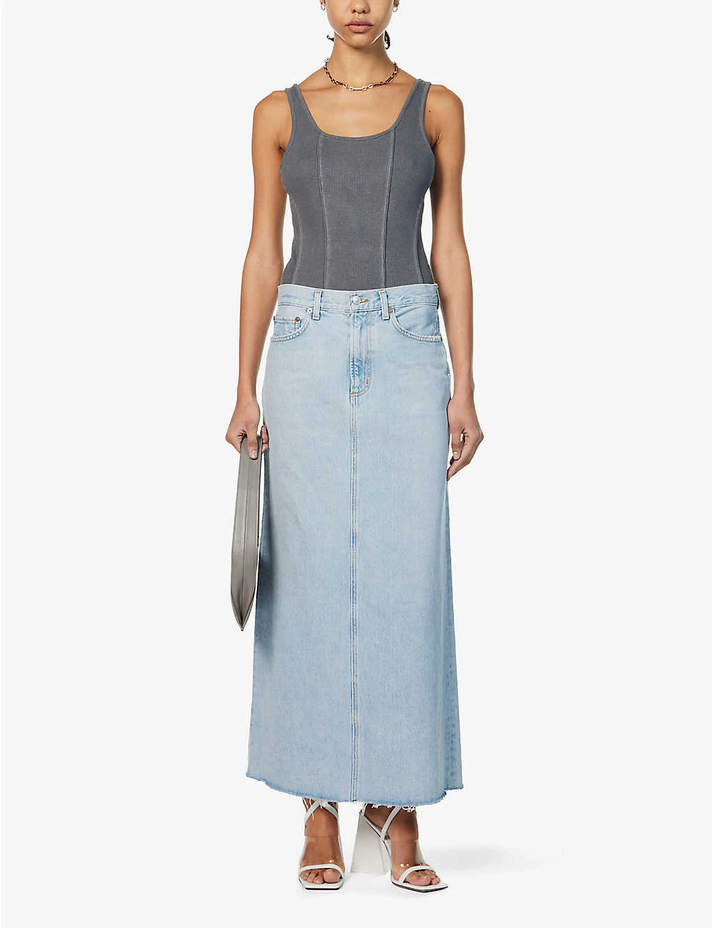 - AGOLDE organic-denim midi skirt
