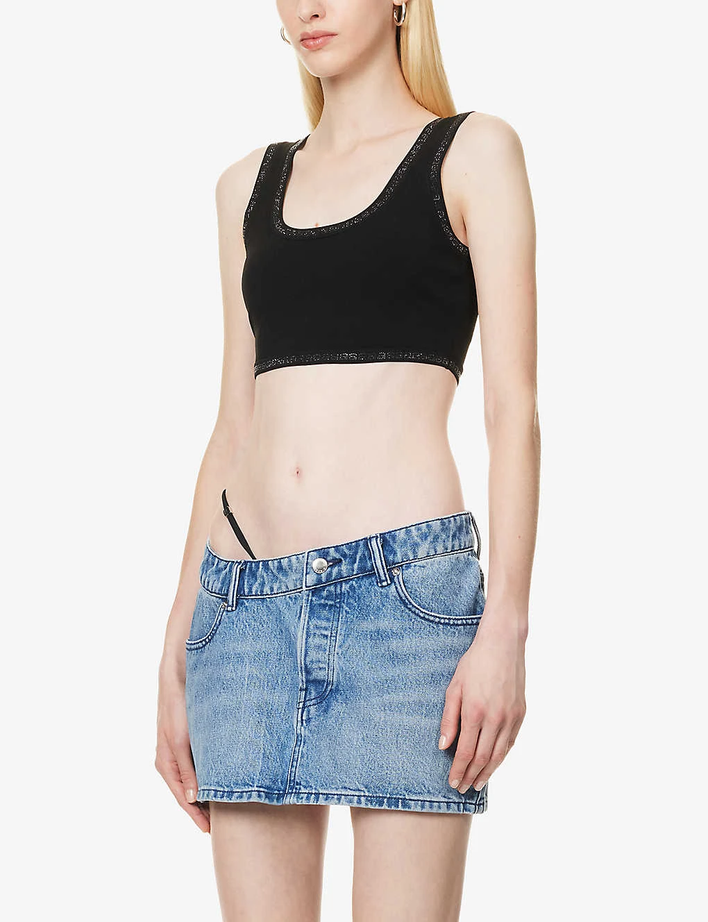 ALEXANDER WANG Crystal-embellished Cropped Stretch-woven Top