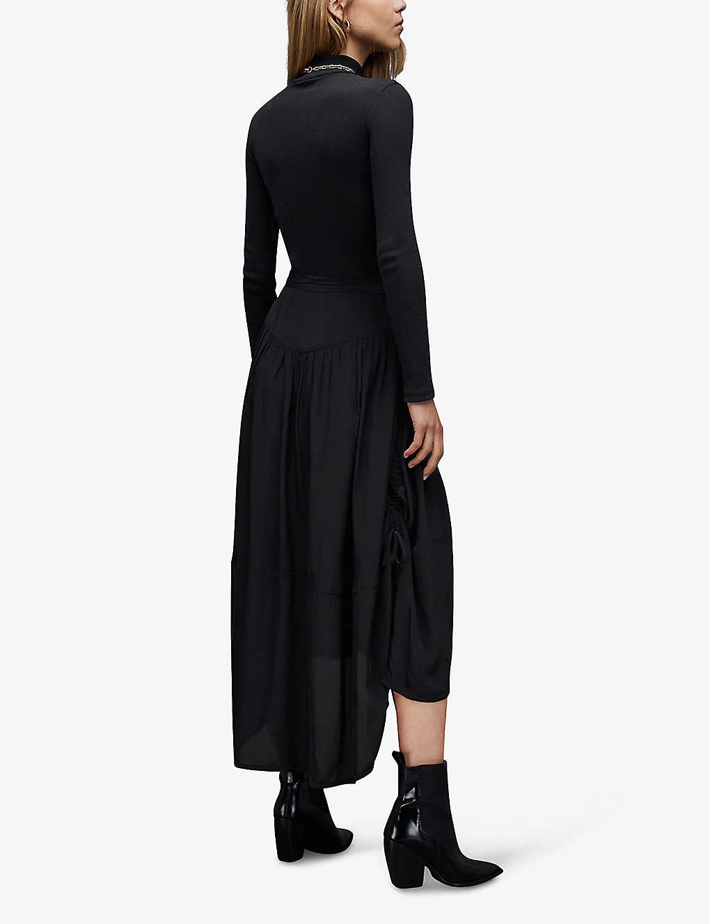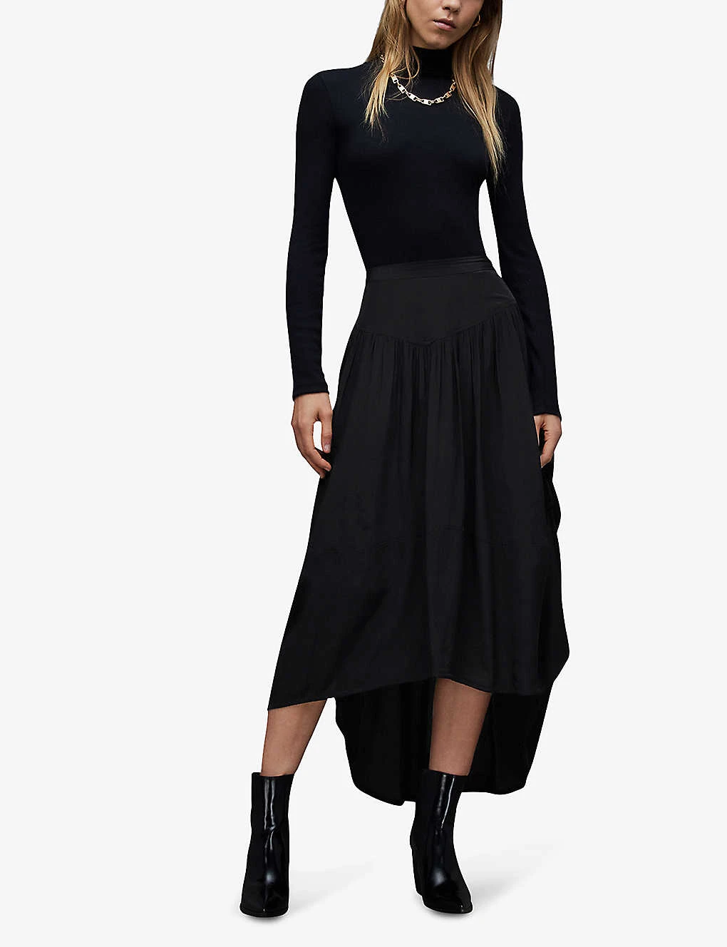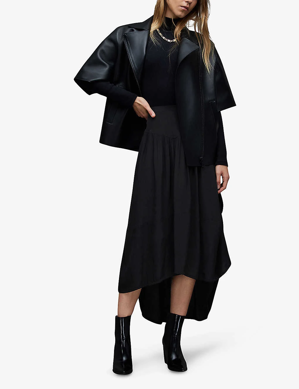 AllSaints Kaye Asymmetric-hem Woven Midi Skirt