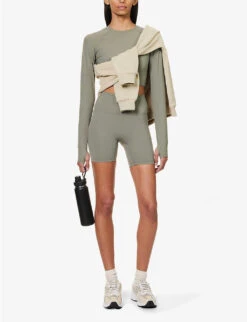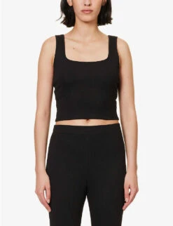 - Regular-fit, sweetheart neck, strapless, twist-knot at front, cut-out panel at front, all-over ribbed knit