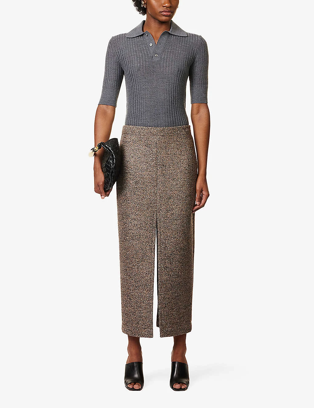 Bottega Veneta Split-front Slim-fit Wool-blend Midi Skirt