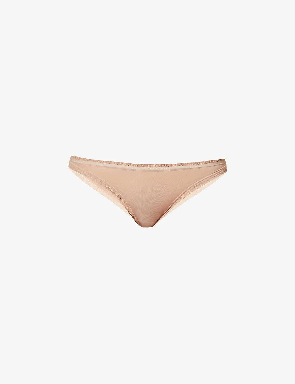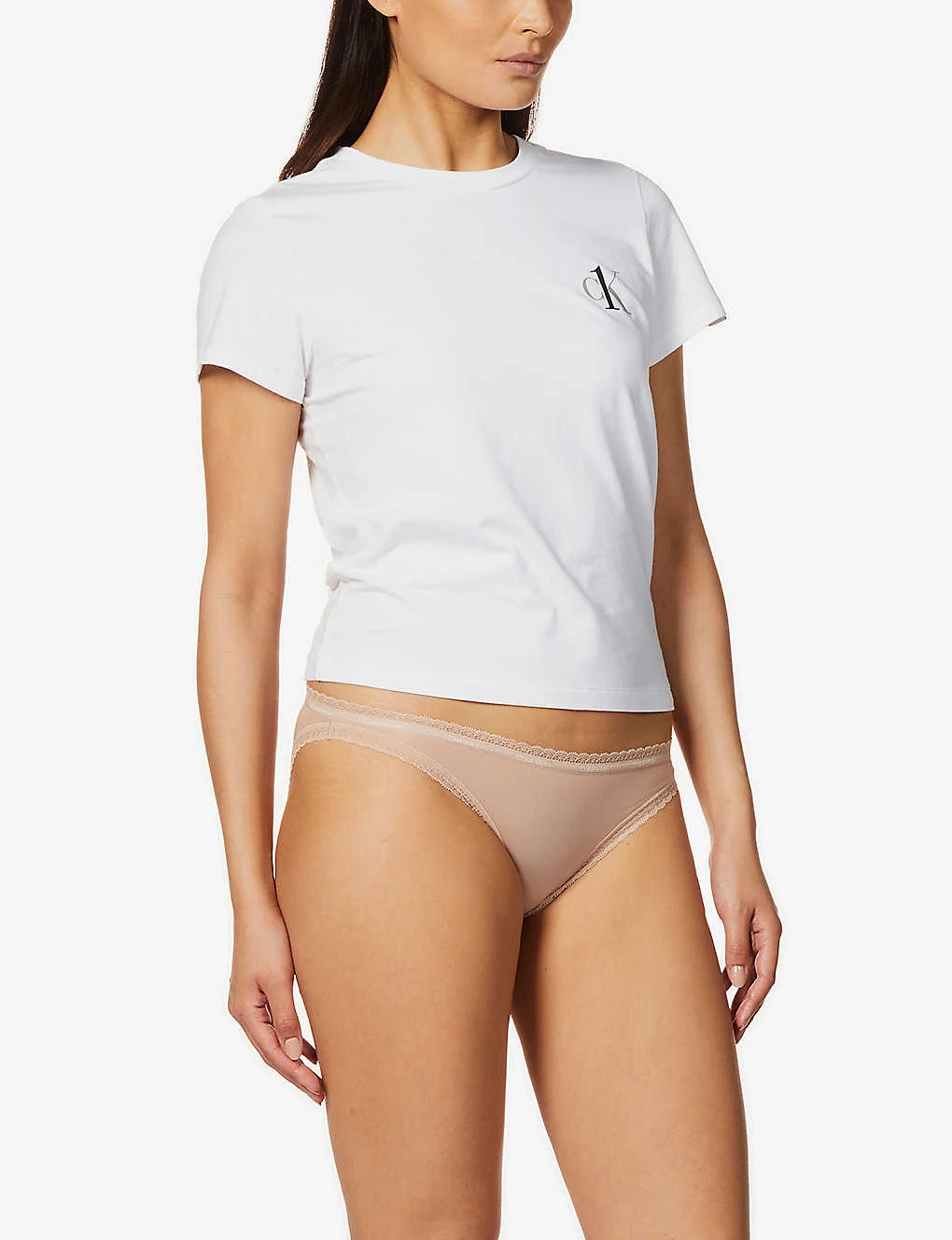 - Mid rise, branded elasticated waistband, lace trims, medium coverage at back, lined gusset