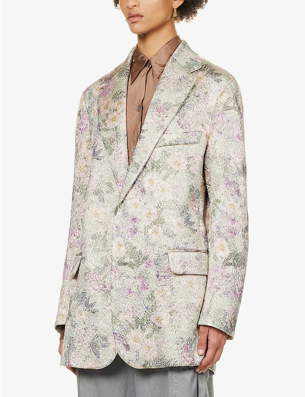 Dries Van Noten Floral-print Notched-lapel Silk-blend Blazer