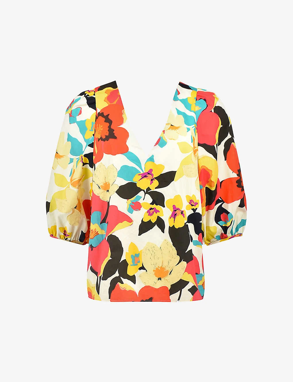 - Regular-fit, V-neck, mid-length puffed sleeves, all-over floral print