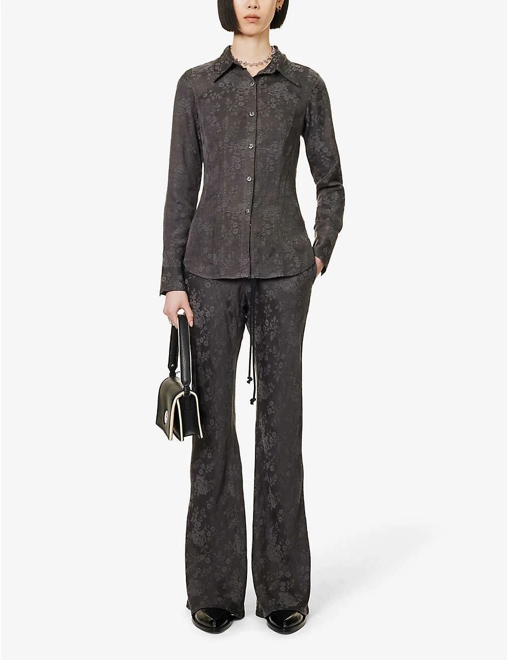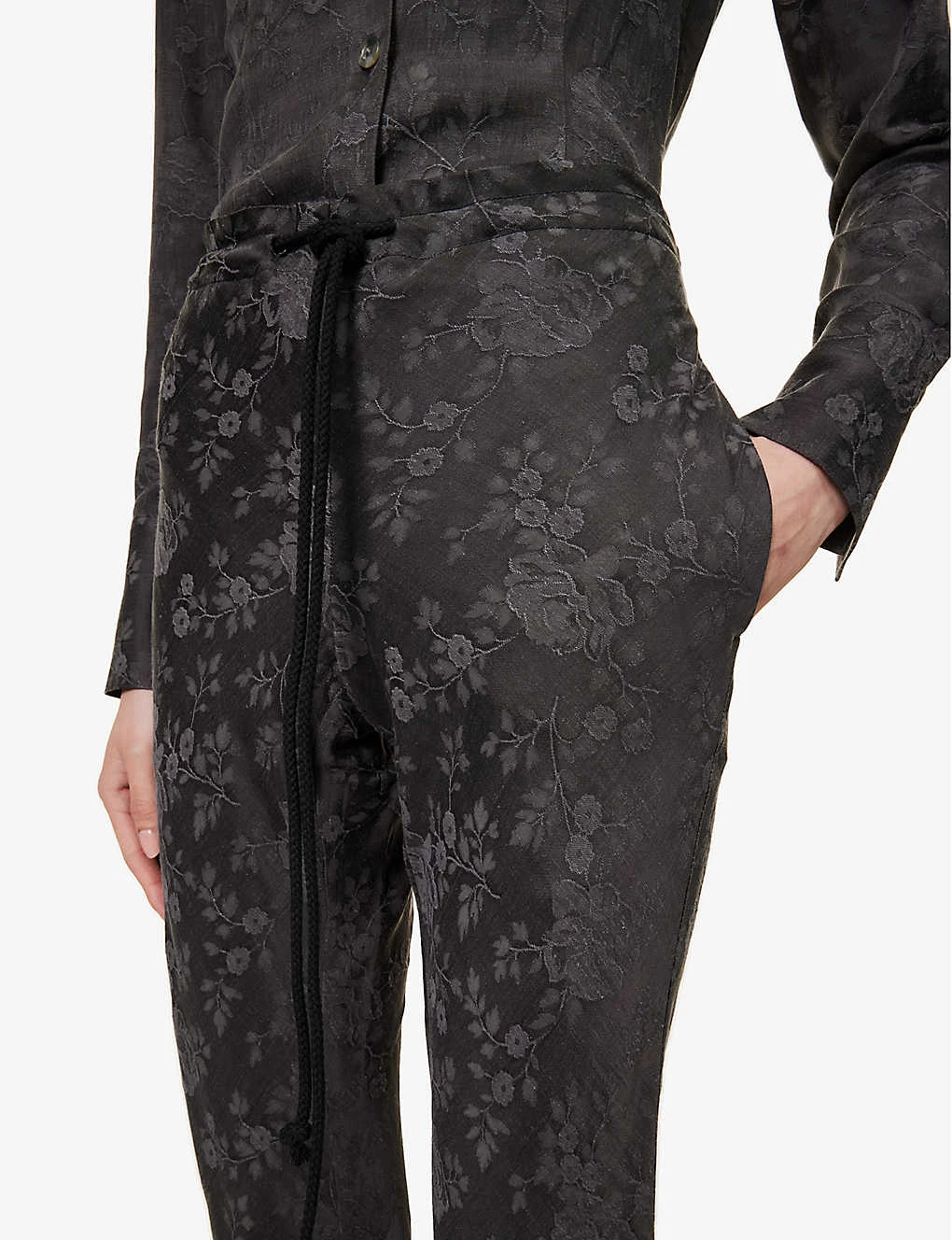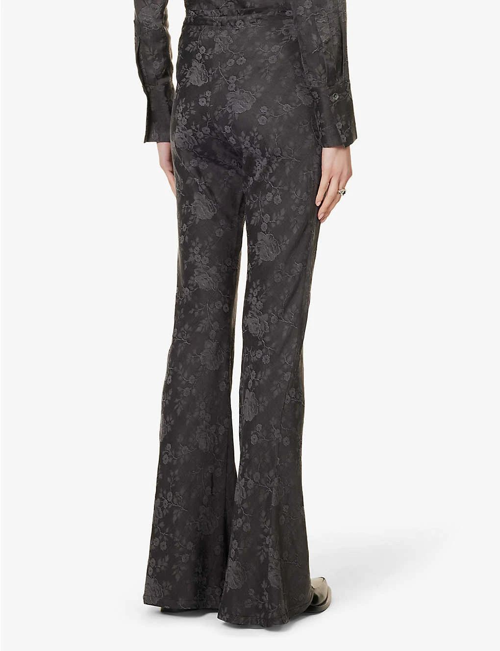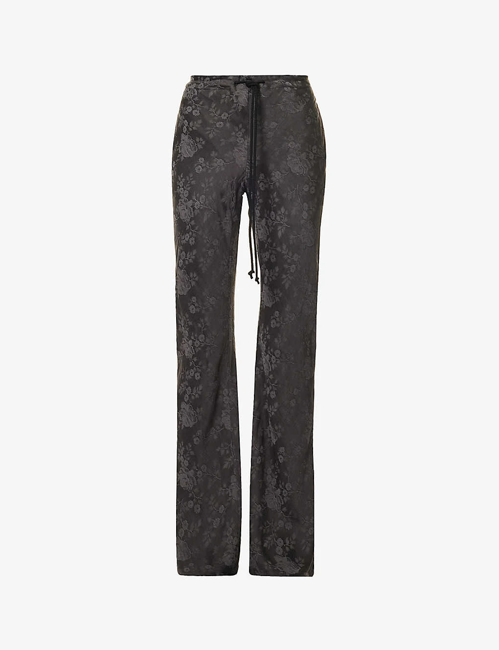 Floral-print Drawstring-waist Flared-leg Mid-rise Woven Trousers