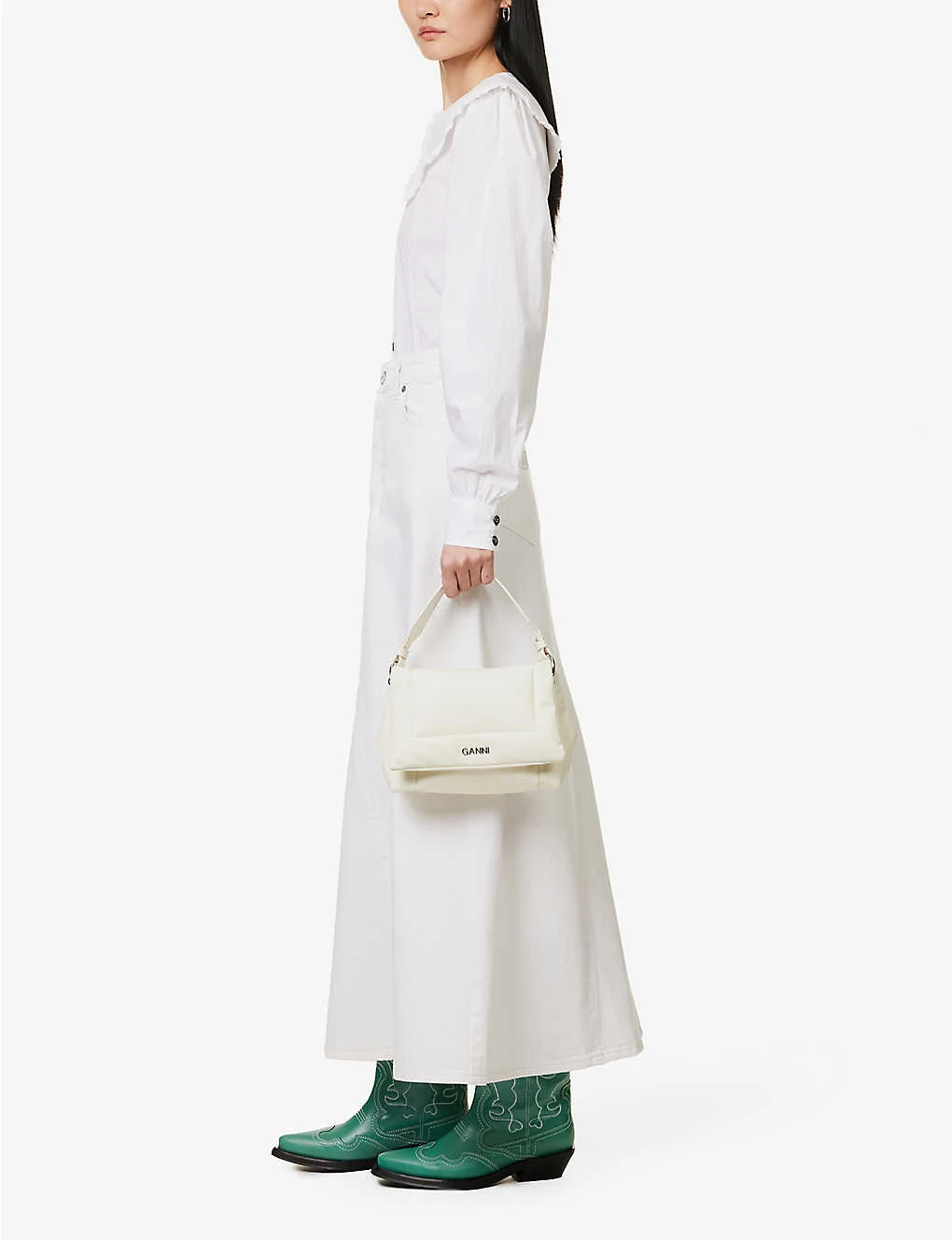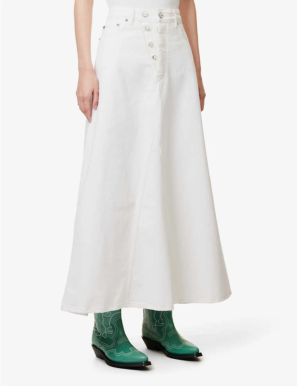 Ganni Mid-rise Logo-appliqué Organic-denim Maxi Skirt