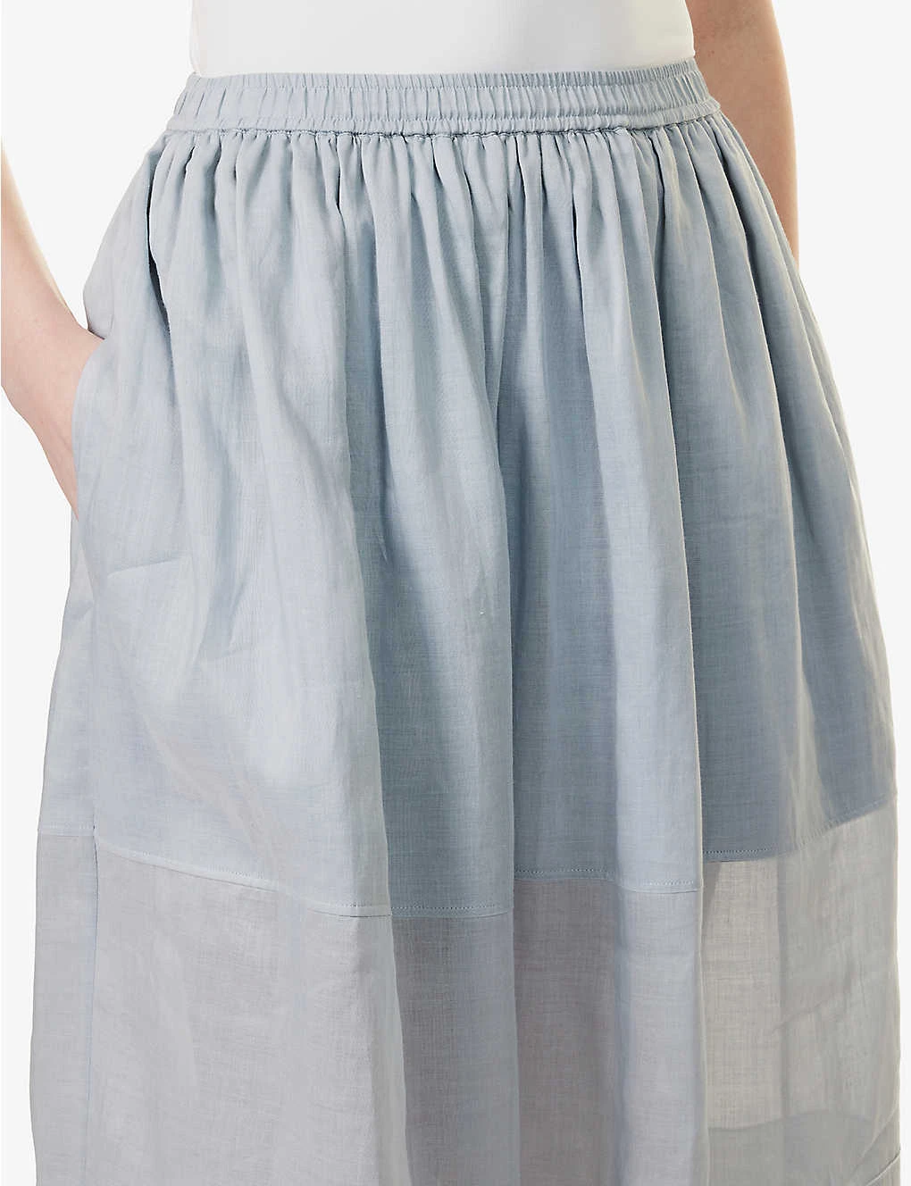- Mid-rise, elasticated waistband, two slip pockets at sides, sheer panels at hem