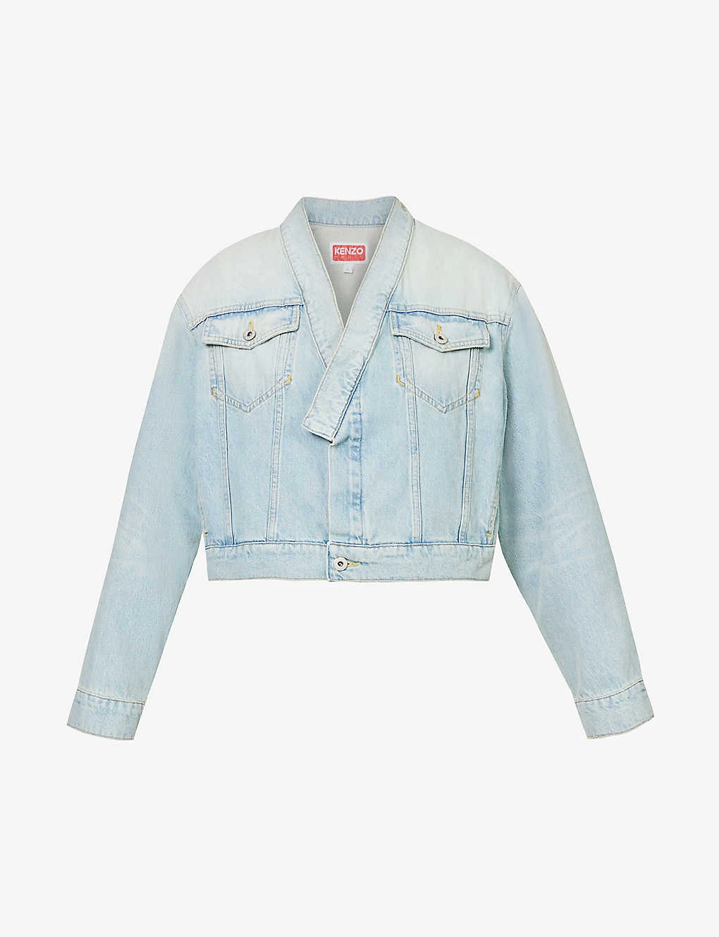 Kenzo Logo-appliqué Faded-wash Denim Jacket