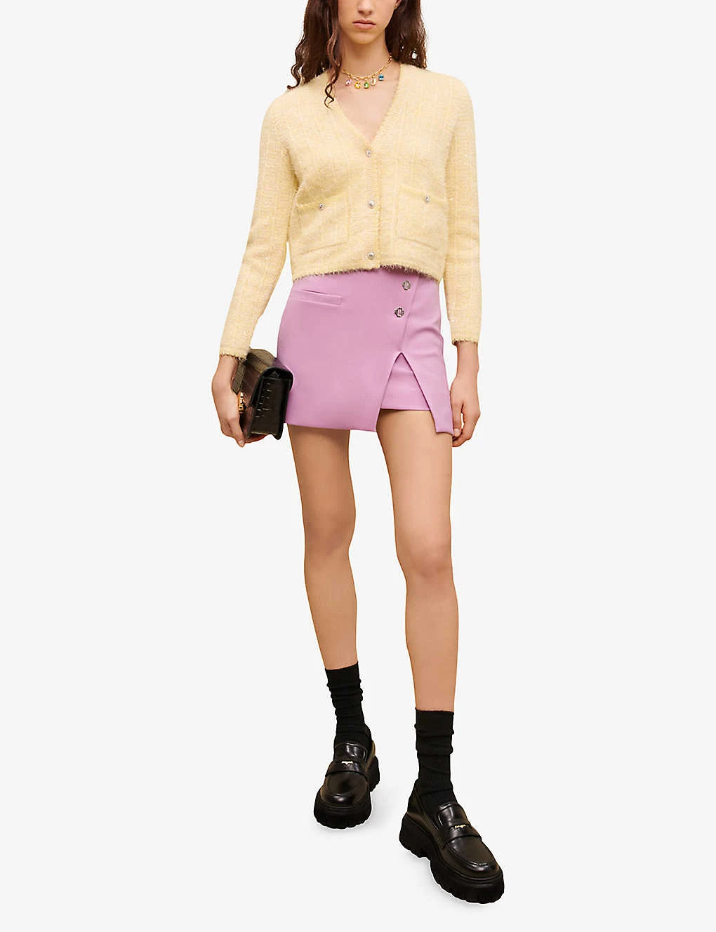 Maje Asymmetric Style Low-rise Stretch-woven Mini Skirt