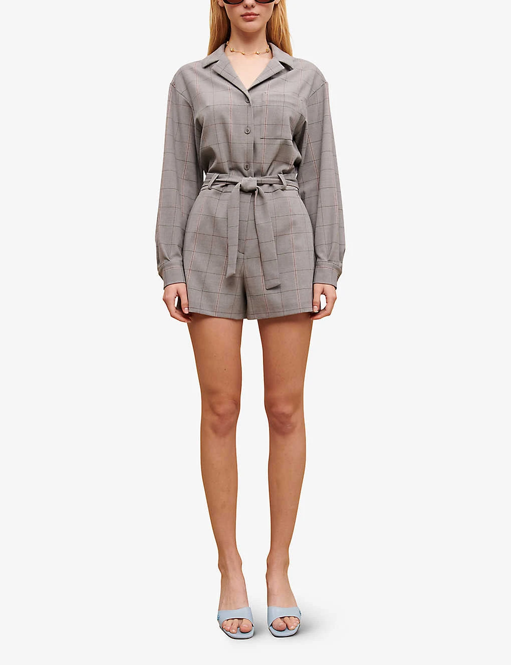 Maje Check-print Stretch Wool-blend Short Jumpsuit