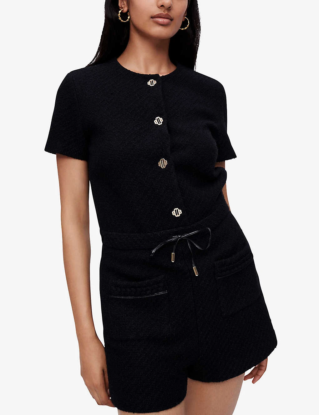 Maje Izola Buttoned Drawstring-waist Tweed Playsuit