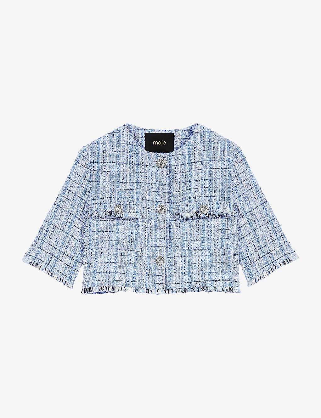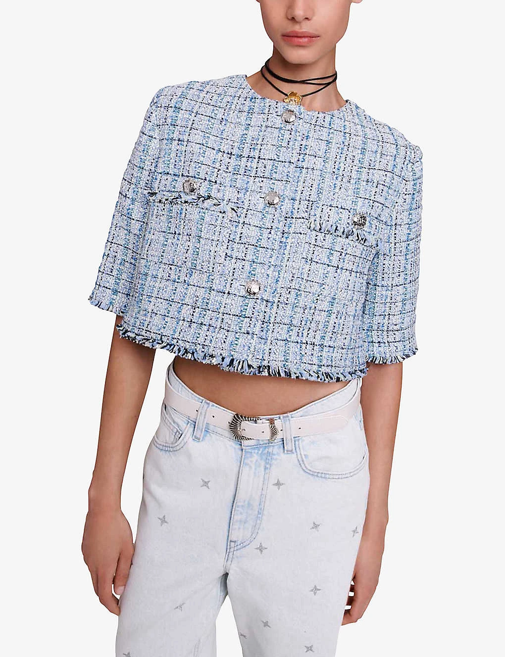 Maje Volinete Fringed-hem Cropped-length Tweed Jacket