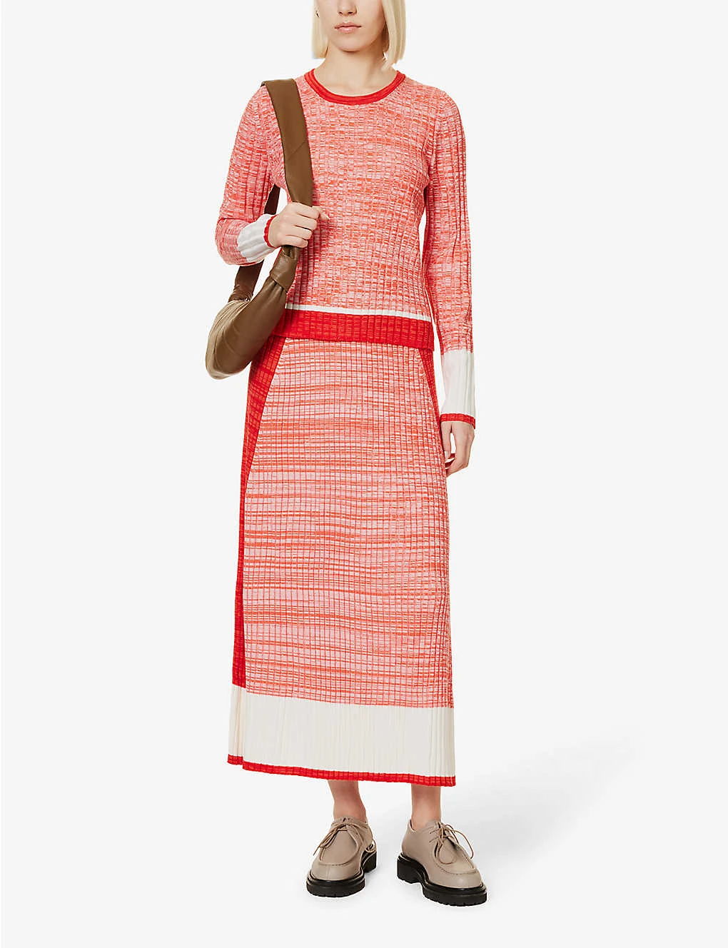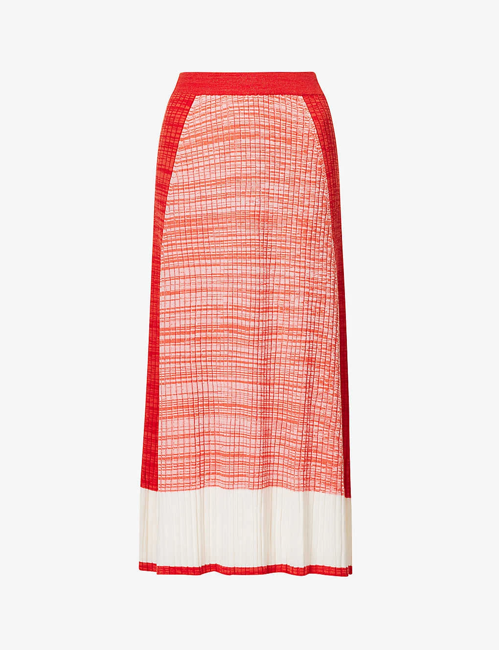 ME AND EM Colour-blocked Ribbed-knit Wool-blend Midi Skirt