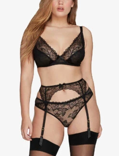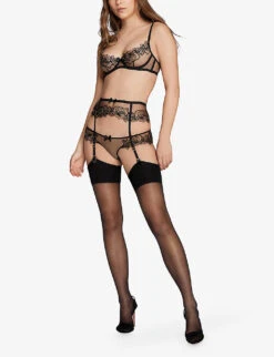 AGENT PROVOCATEUR Leni Lace-embroidered Woven Suspender Belt