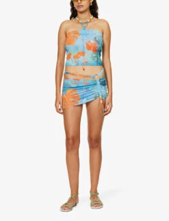 Jaded London Ruched Bead-embellished Stretch-mesh Mini Skirt