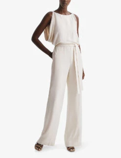 Reiss Maple Off-shoulder Belted-waist Stretch-woven Jumpsuit
