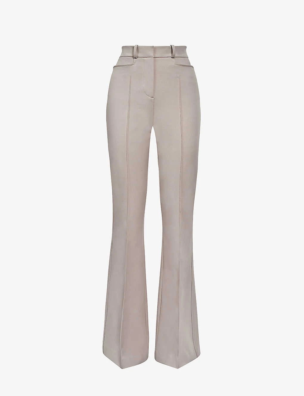 - Mid-rise, flared leg, pressed crease at the centre, two pockets at the side