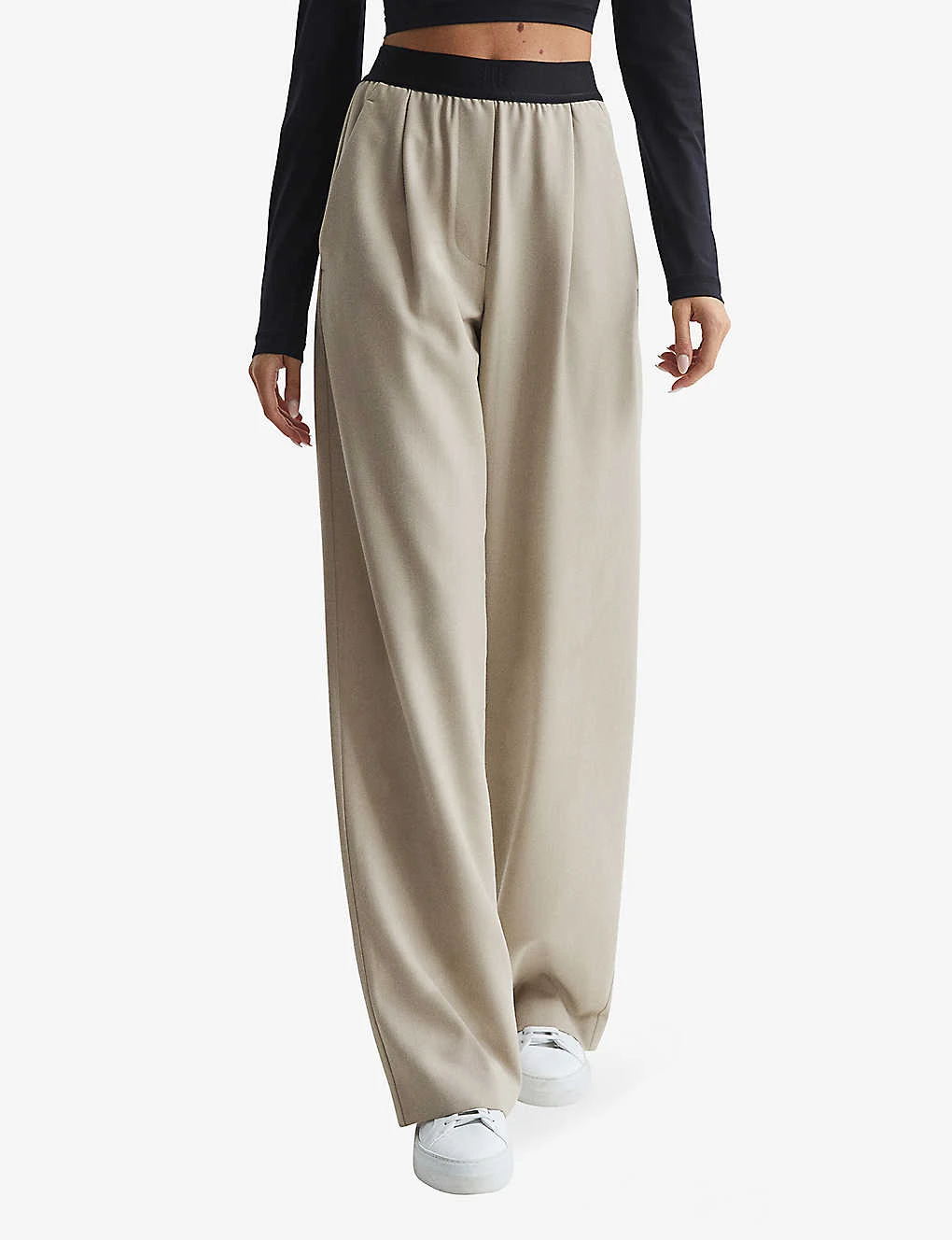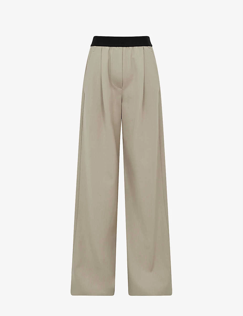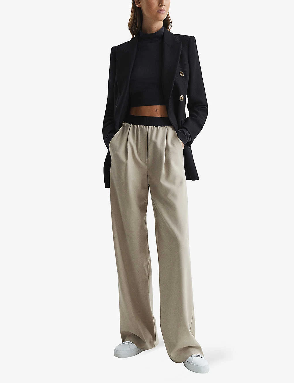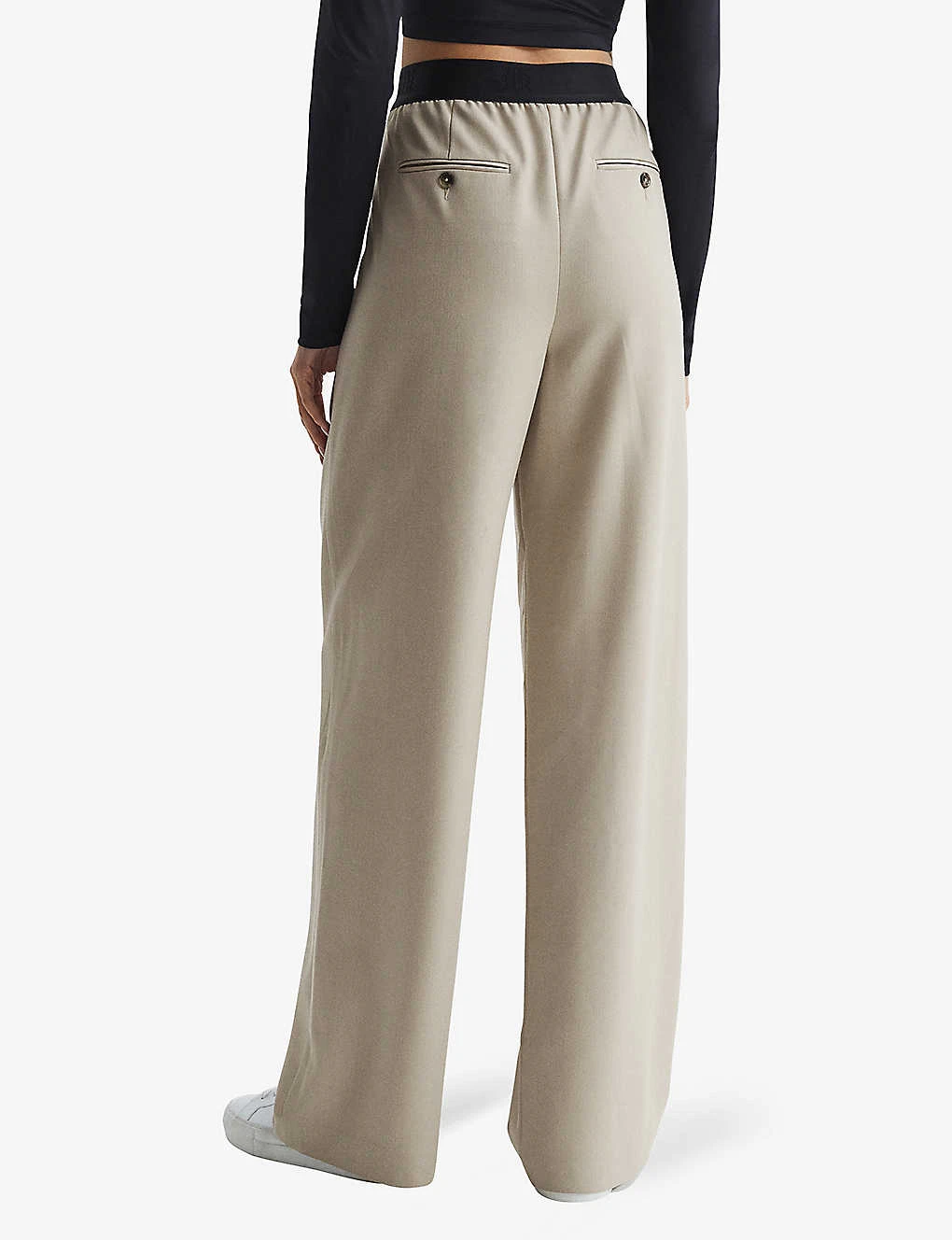 Reiss Lena Contrast-waist Wide-leg High-rise Stretch-woven Trousers