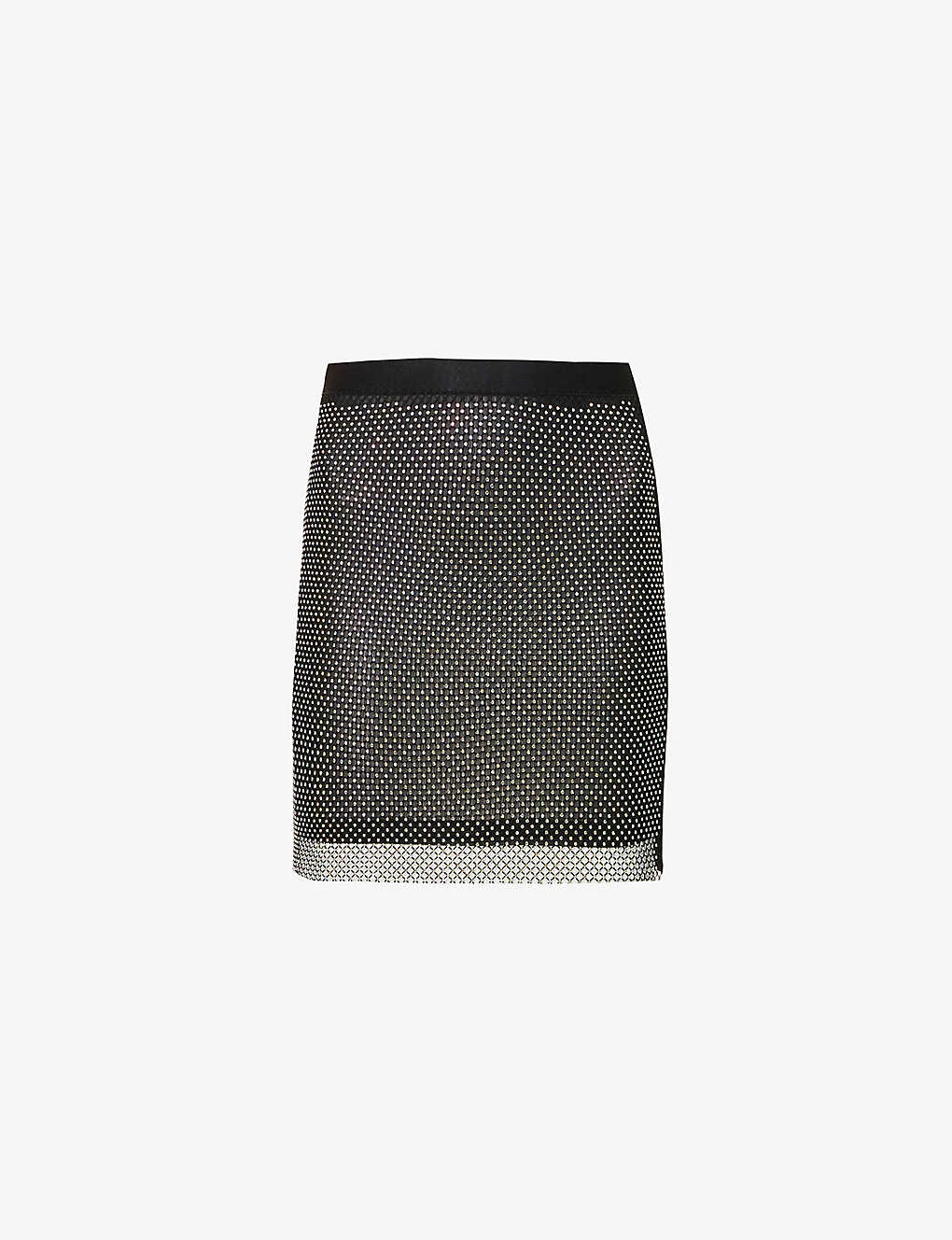 - Regular fit, mid-waist, all-over rhinestone embellishments, lined