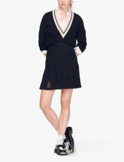 Sandro Alicanted Ruffled High-waisted Cotton-blend Mini Skirt