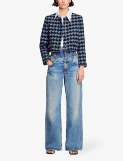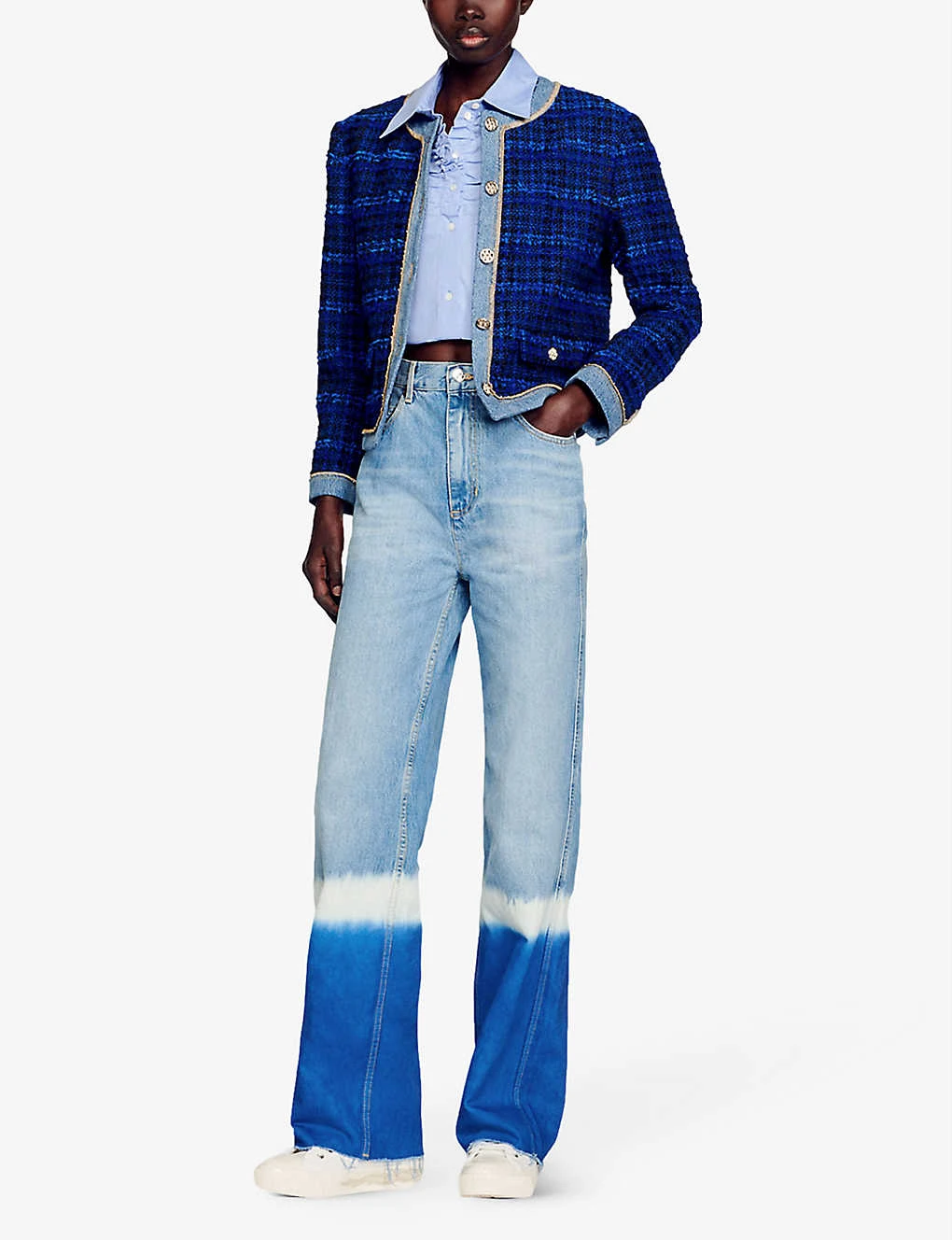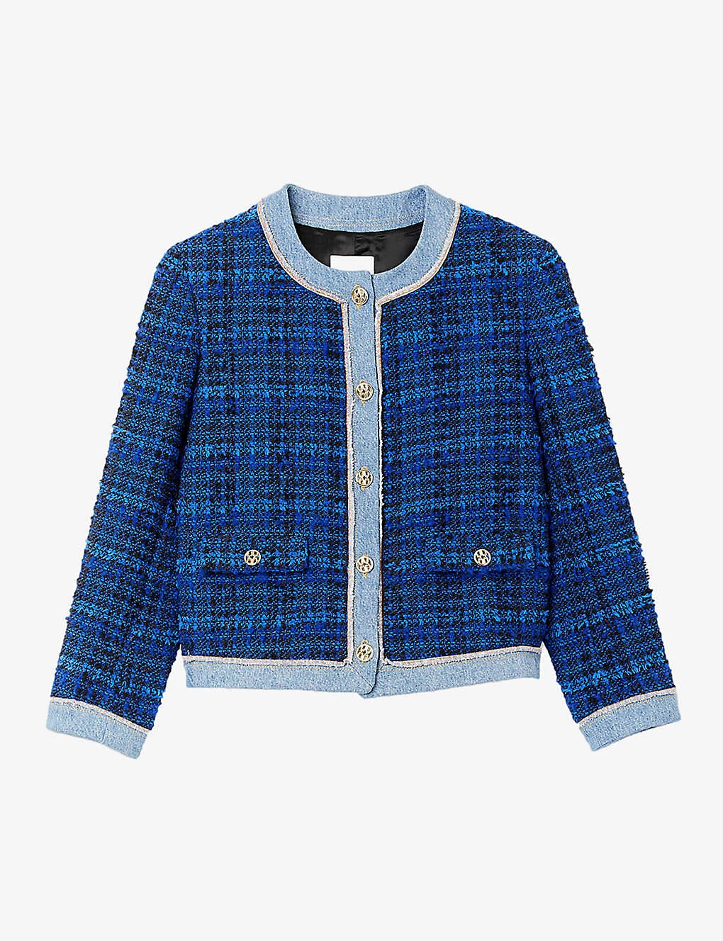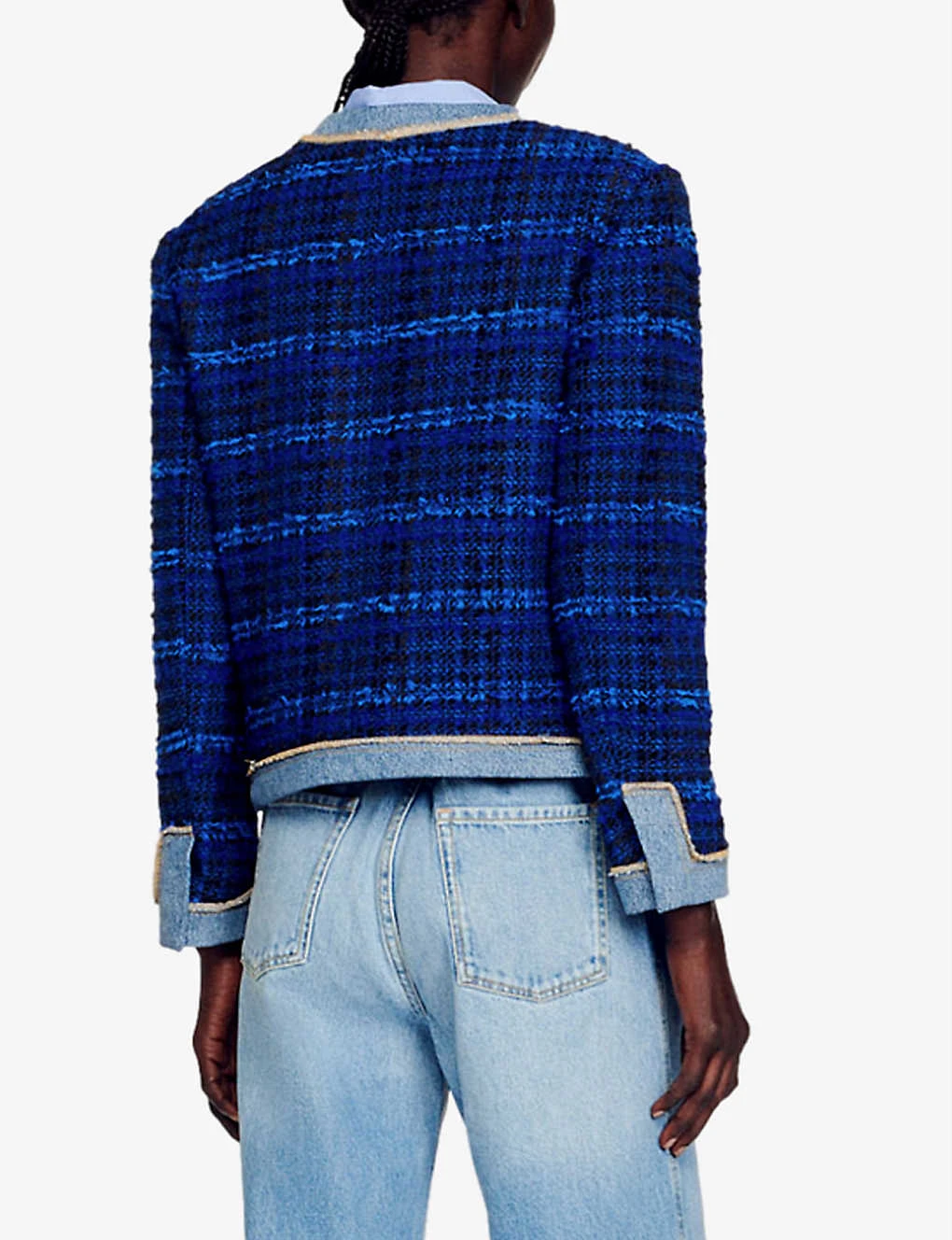 Sandro Asti Contrast-trim Tweed Cotton-blend Blazer