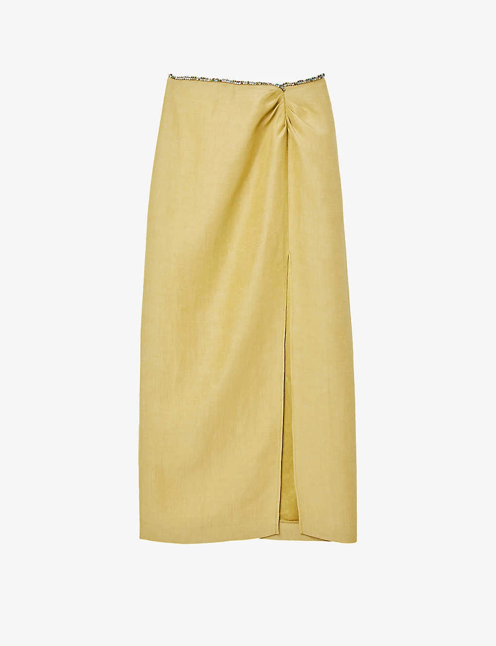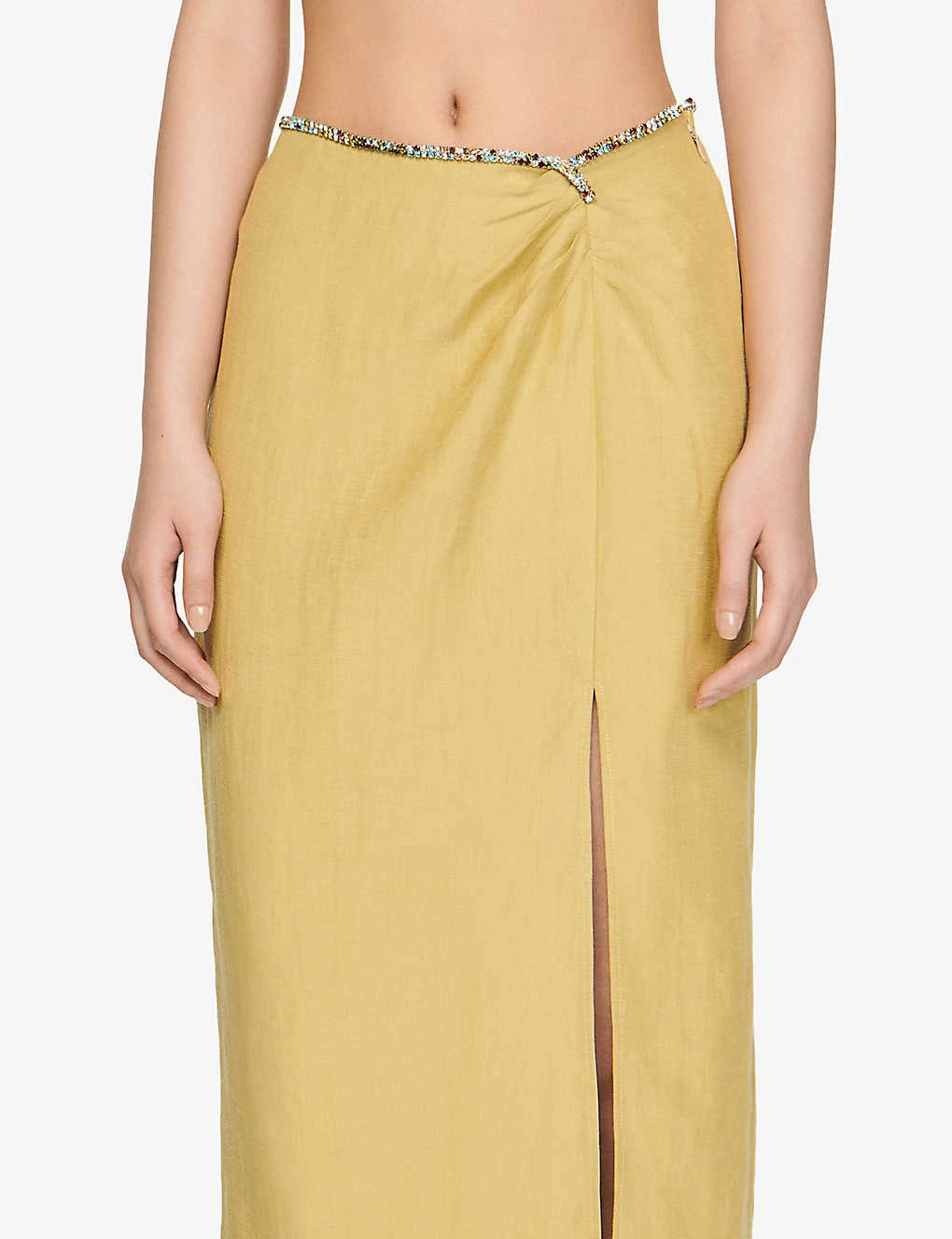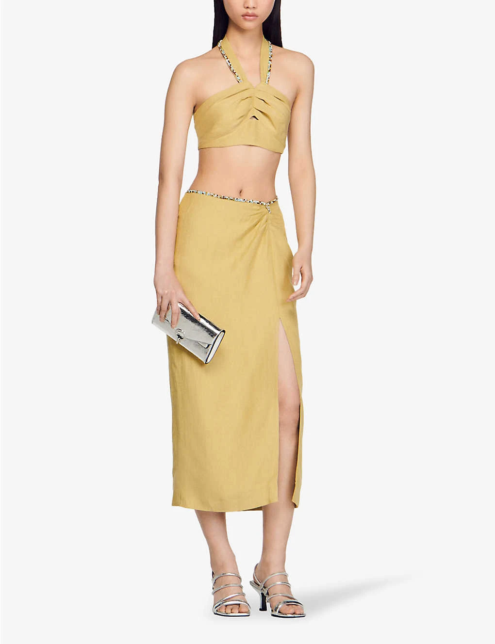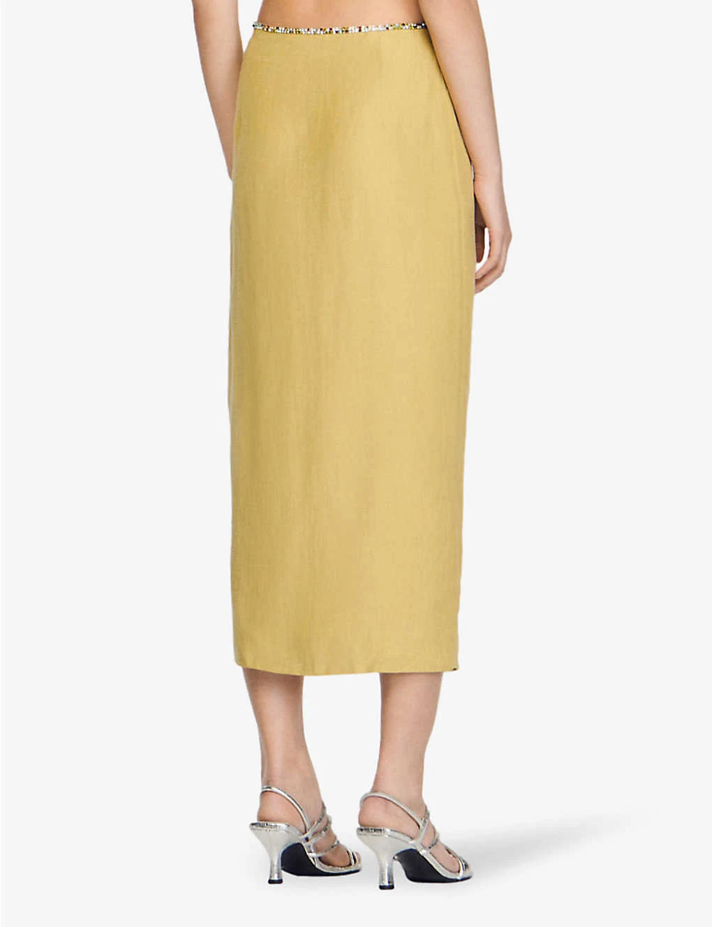 Sandro Olariane Crystal-embellished Woven Midi Skirt