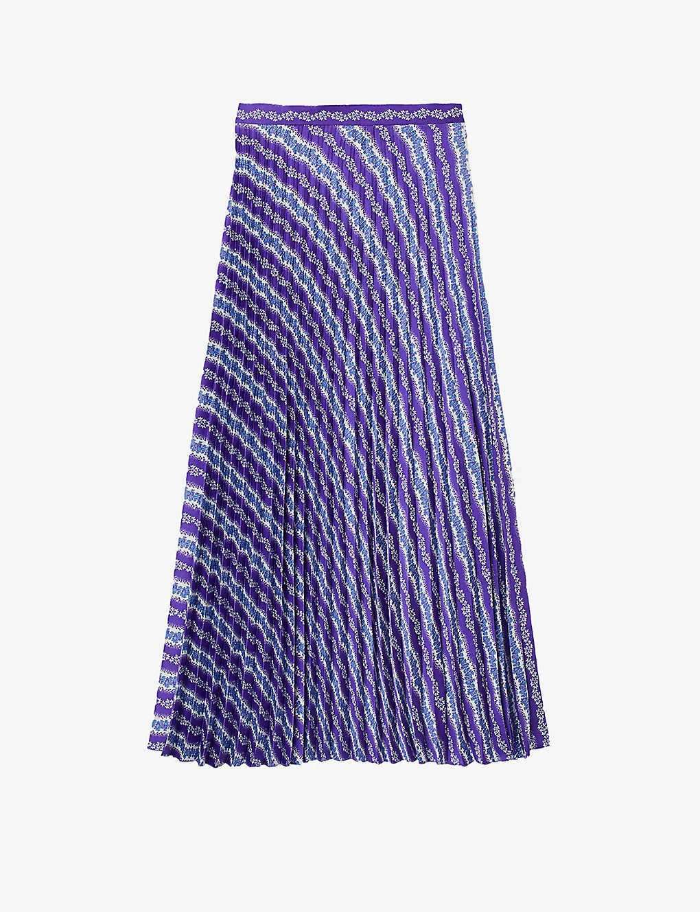 Sandro Perona Floral-print Pleated Woven Midi Skirt