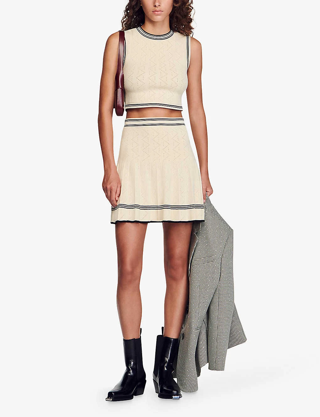 Sandro Poisson Contrast-stripe Sleeveless Knitted Jumper