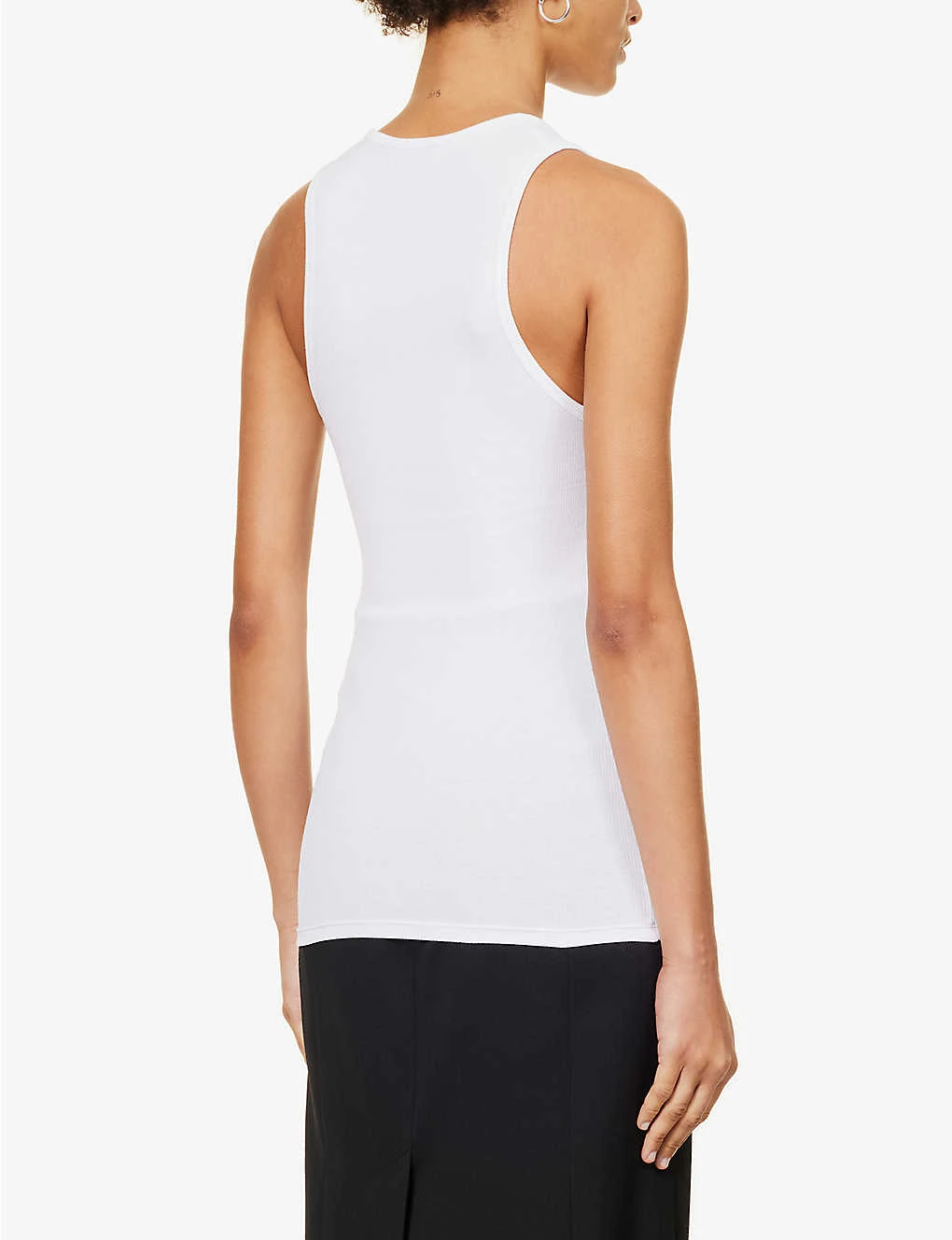 - Slim fit, scoop neckline, sleeveless, dropped armholes, ribbed texture