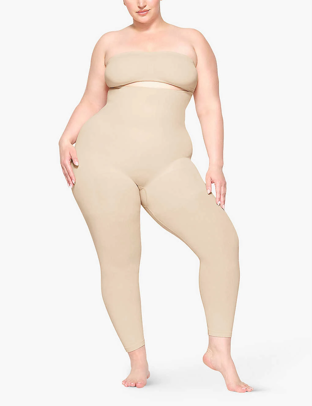 - Fitted, super-high rise, elasticated waistband, seamless construction, compression panel at waist, full coverage at back