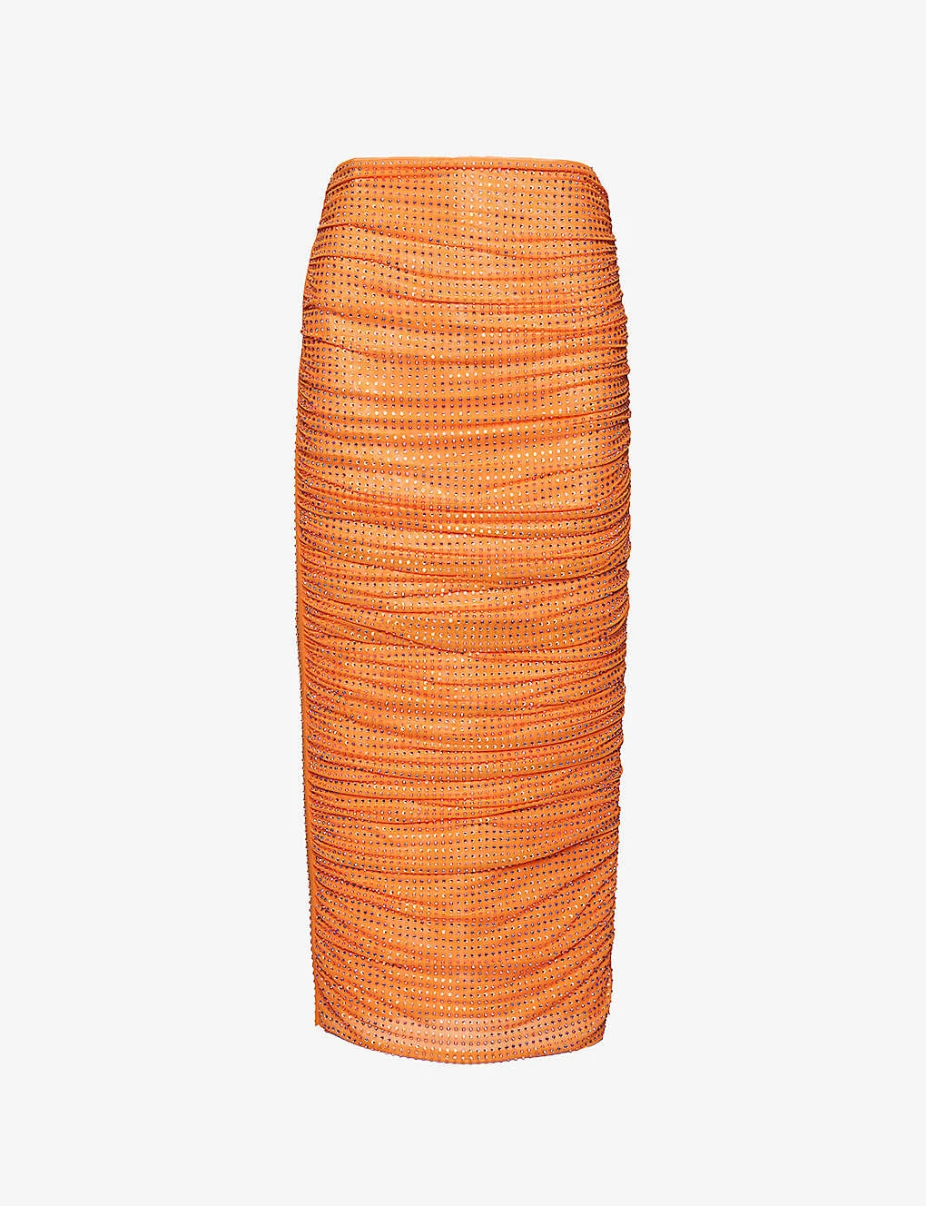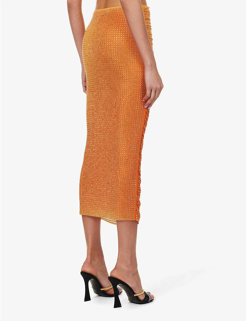 SELF PORTRAIT Crystal-embellished Slim-fit Stretch-woven Midi Skirt
