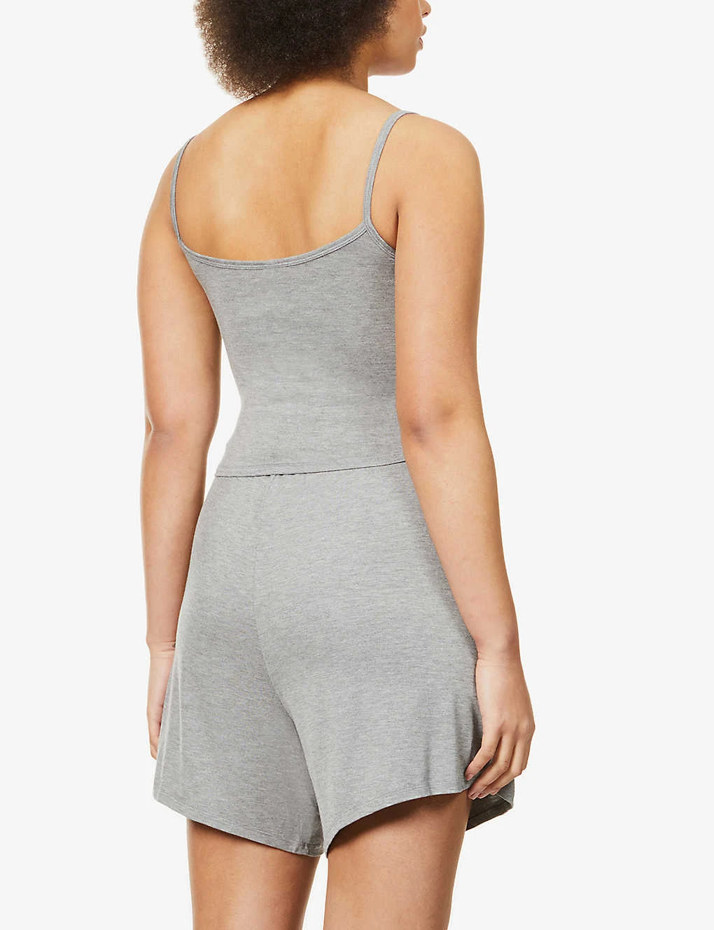 - High-rise, elasticated waistband, drawstring at waist, exposed seams, tonal stitching, straight hems