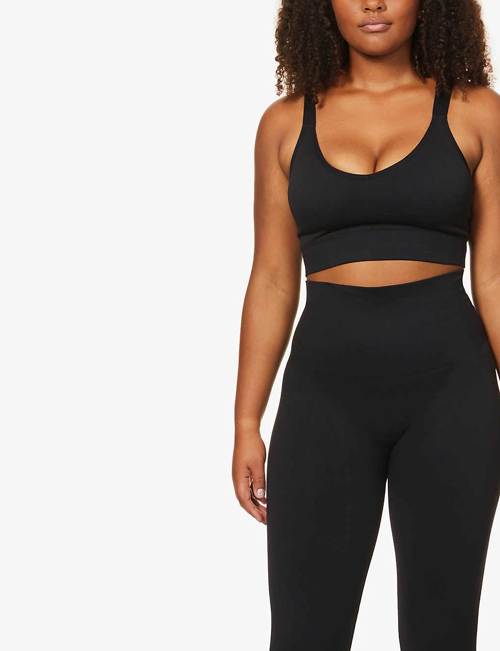 - Fitted, high rise, elasticated waistband, tonal stitching