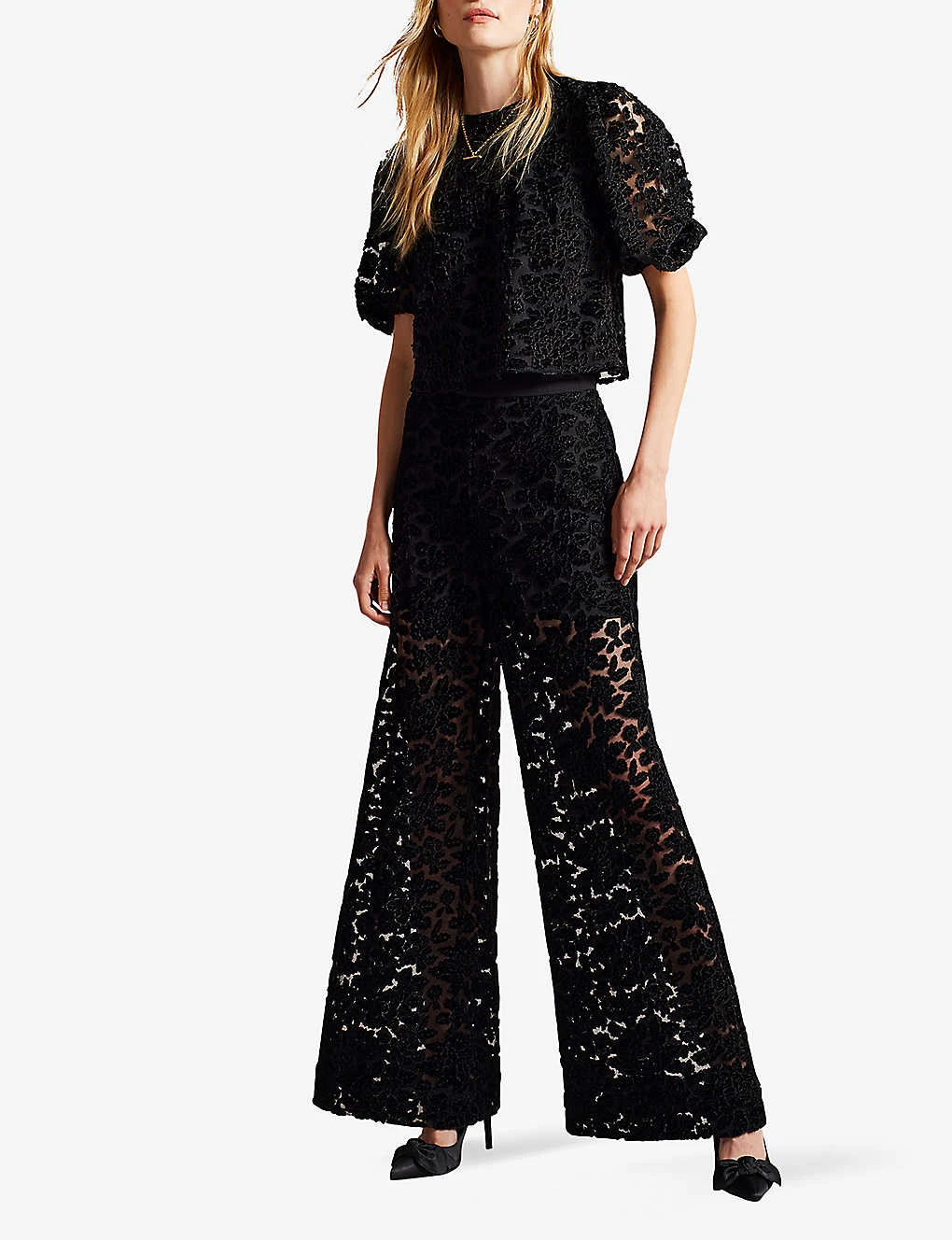 Ted Baker Claudya Semi-sheer Wide-leg Devoré Velvet Trousers