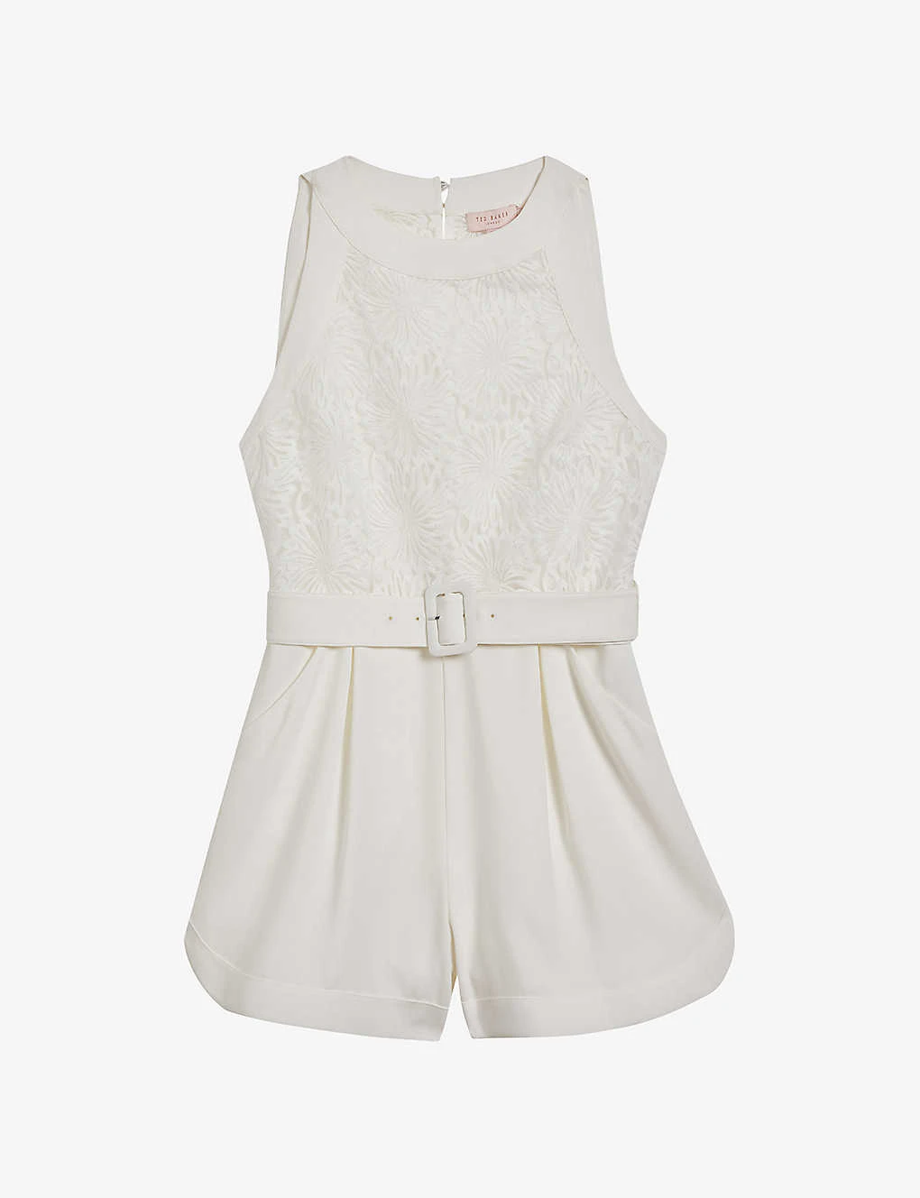 Ted Baker Finliee Floral-embroidered Belted Woven Playsuit
