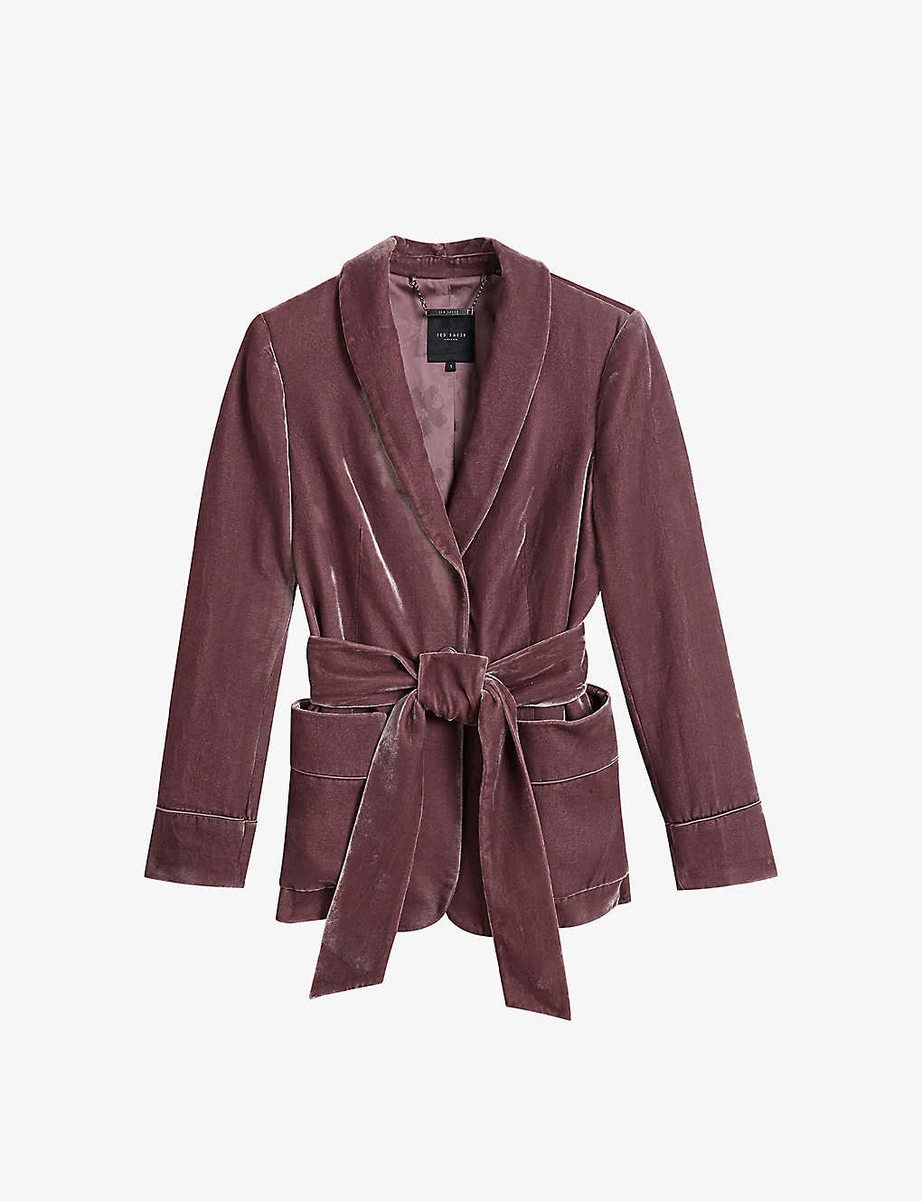 Ted Baker Tansya Tied-waist Shawl-collar Velvet Jacket