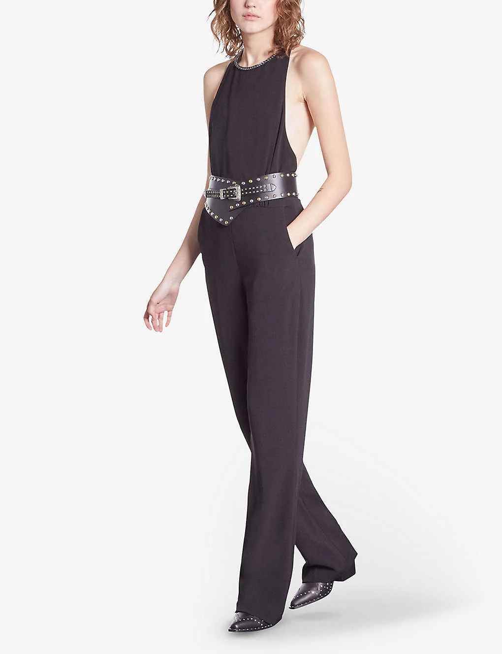 THE KOOPLES Chain-embellished Halter-neck Stretch-woven Jumpsuit