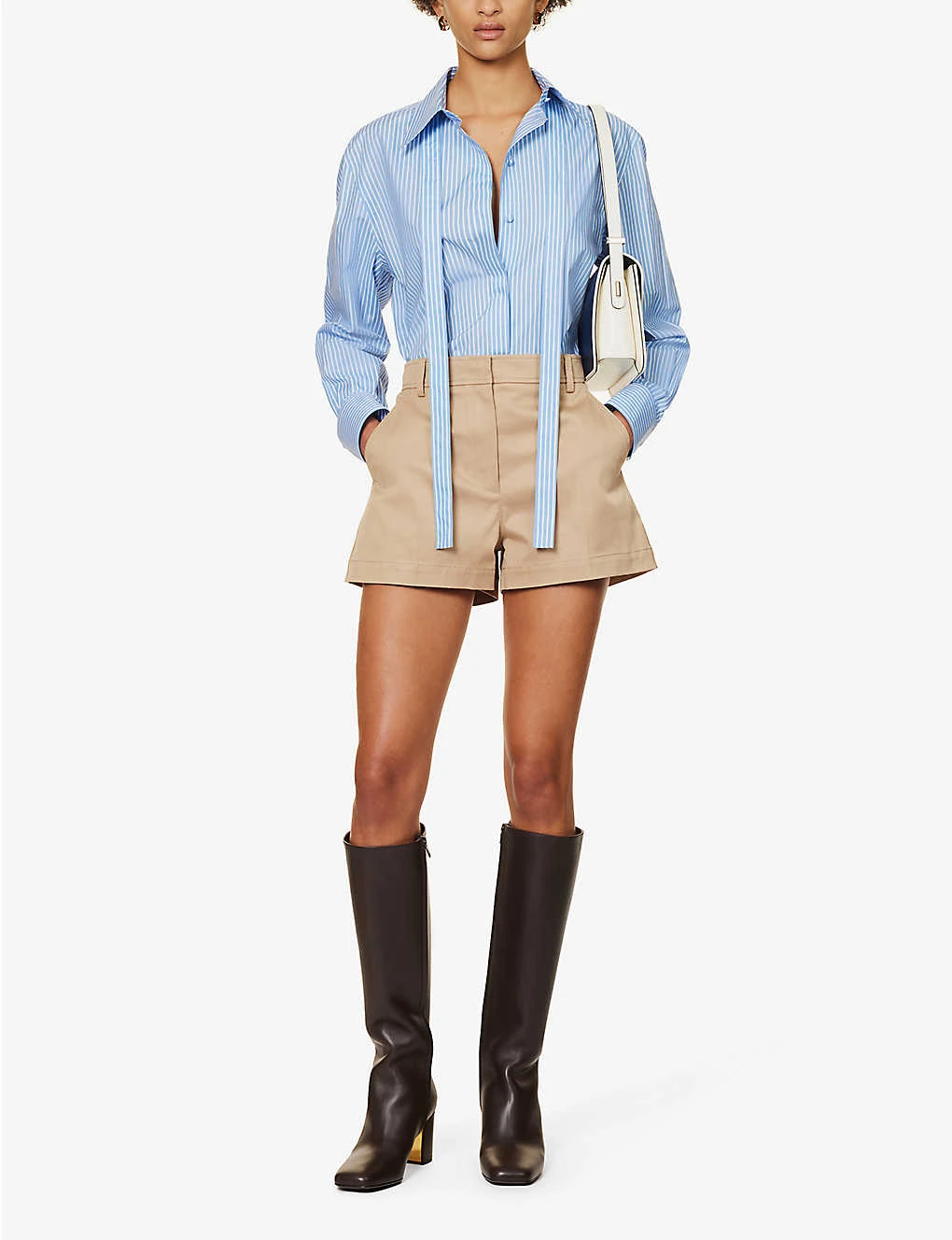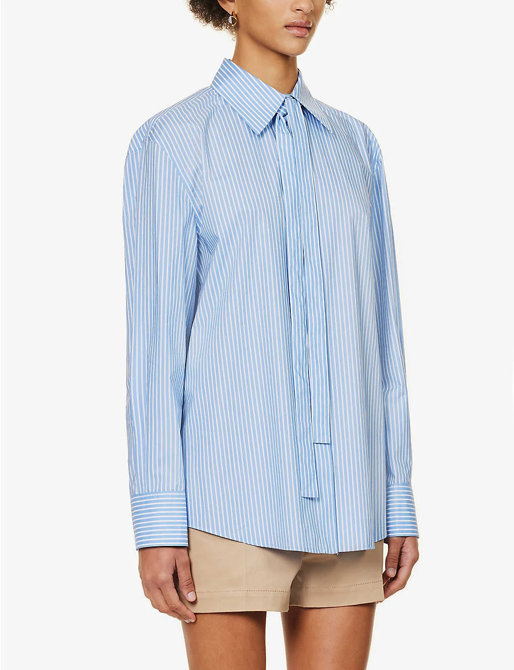 Valentino Self-tie Striped-pattern Regular-fit Cotton Shirt