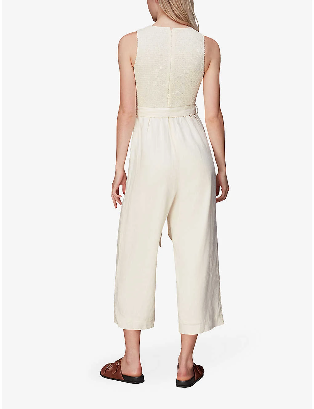 Whistles Shirred Wide-leg Linen-blend Jumpsuit