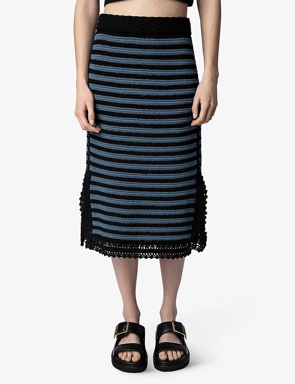 Zadig & Voltaire Jackson Striped Crochet Knitted Knee-length Skirt