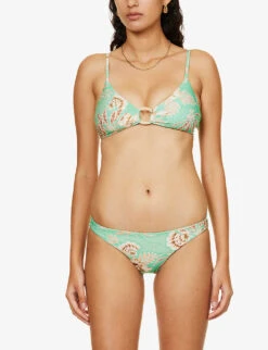 Zimmermann bikini set72% polyamide, 28% elastane; lining 92% polyamide, 8% elastaneSelf-tie fasteningTop:Halterneck, soft triangle cups, hoop embellishments at strapsBottoms:Mid-rise, elasticated waistband, mid-coverage at back, hoop embellishments at straps, fully linedHand washTrue to sizeModel is 5ft 9in/1.75m and wears a size smallLightweight, stretchy